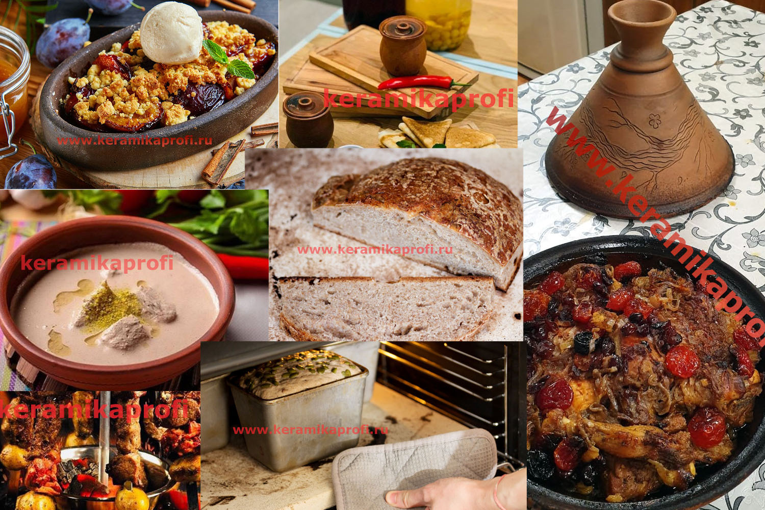 Кеци, горшочки, тарелки, тажины, курницы, а так же другую посуду для запекания в духовой печи;