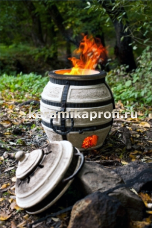 Тандыр оборудован ножками! Кроме того, имеет широкую горловину, что существенно облегчает приготовление. Рассчитан так же на компанию до 8 человек. Тандыр имеет круглую форму, а значит долго будет держать тепло. Подробности тут - ТАНДЫРЫ