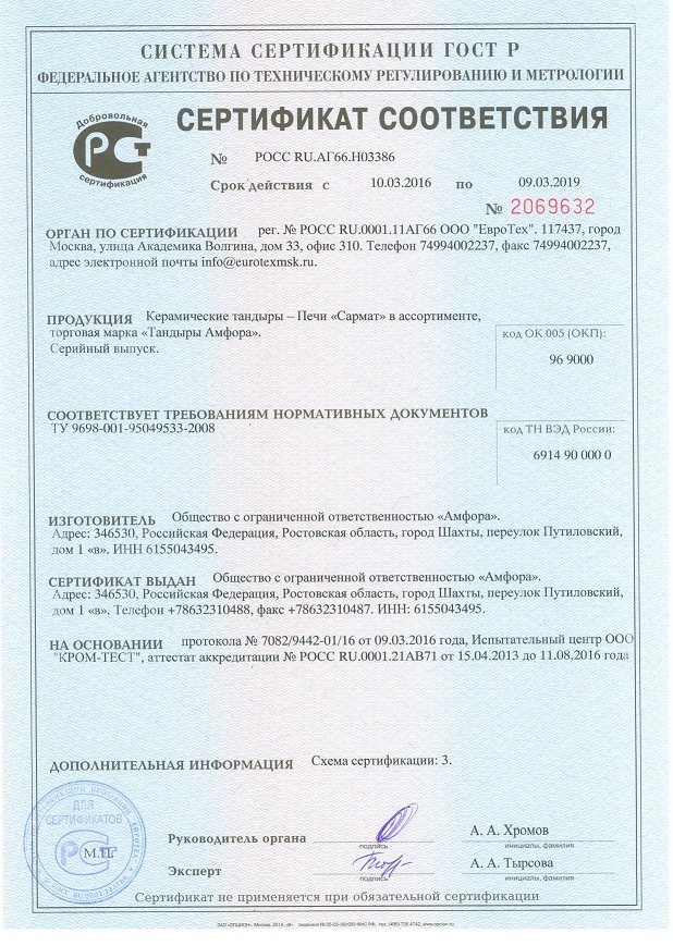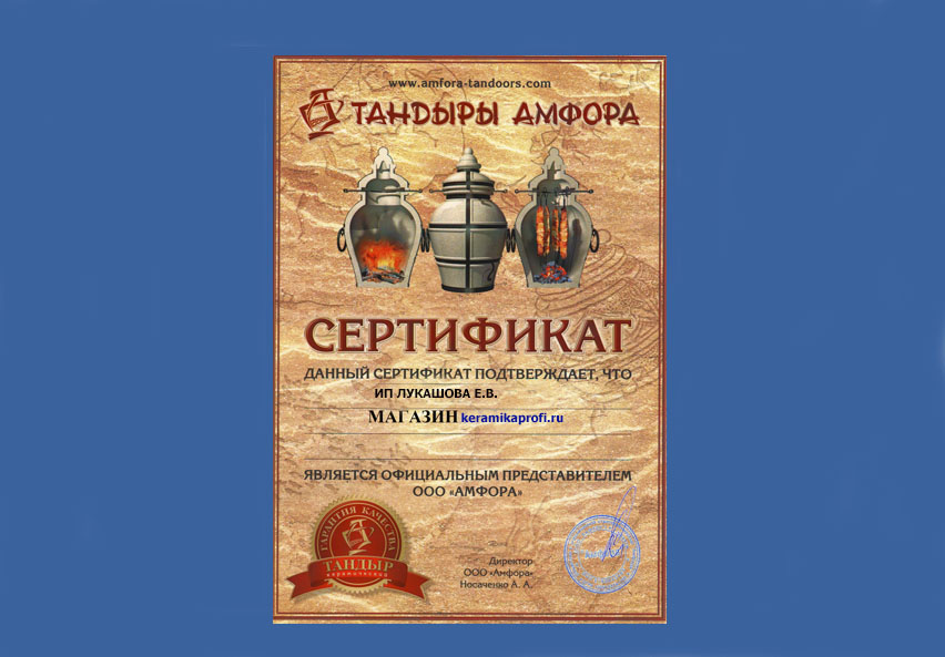 Работаем с тандырами Амфора уже более 10 лет. Чуть ниже вы найдете сертификаты. Остерегайтесь подделок. В конце каталога читайте статью, как их избежать.