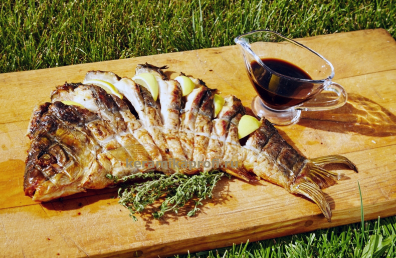 Решетка предназначена для запекания крупной рыбы в тандыре. Не очень крупную рыбу можно готовить так же в тандыре с помощью универсальной этажерки.