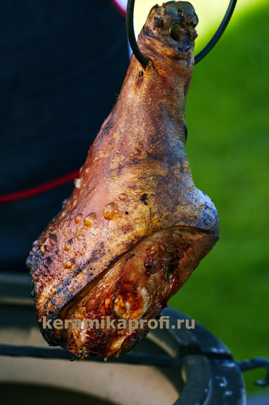 Во первых, обращаем внимание, что крюк не кованный, а изготовлен из настоящей пищевой нержавейки. Потом. на таком крюке можно готовить целого барашка или баранью ногу, утку или запечь большого гуся, а так же рульку, и любую крупную тушу. Можно готовить, завернув мясо в фольгу или же без нее, эффект от приготовления будет разным