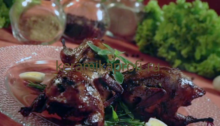 На данном аксессуаре так же можно готовить курицу, перепелку, цыпленка, утку, но ещё с помощью крышки происходит усиления эффекта. Так же, такую курницу удобней мыть, еще и потому, что она изнутри покрыта глазурью. Однако не стоит забывать о правилах эксплуатации керамических.