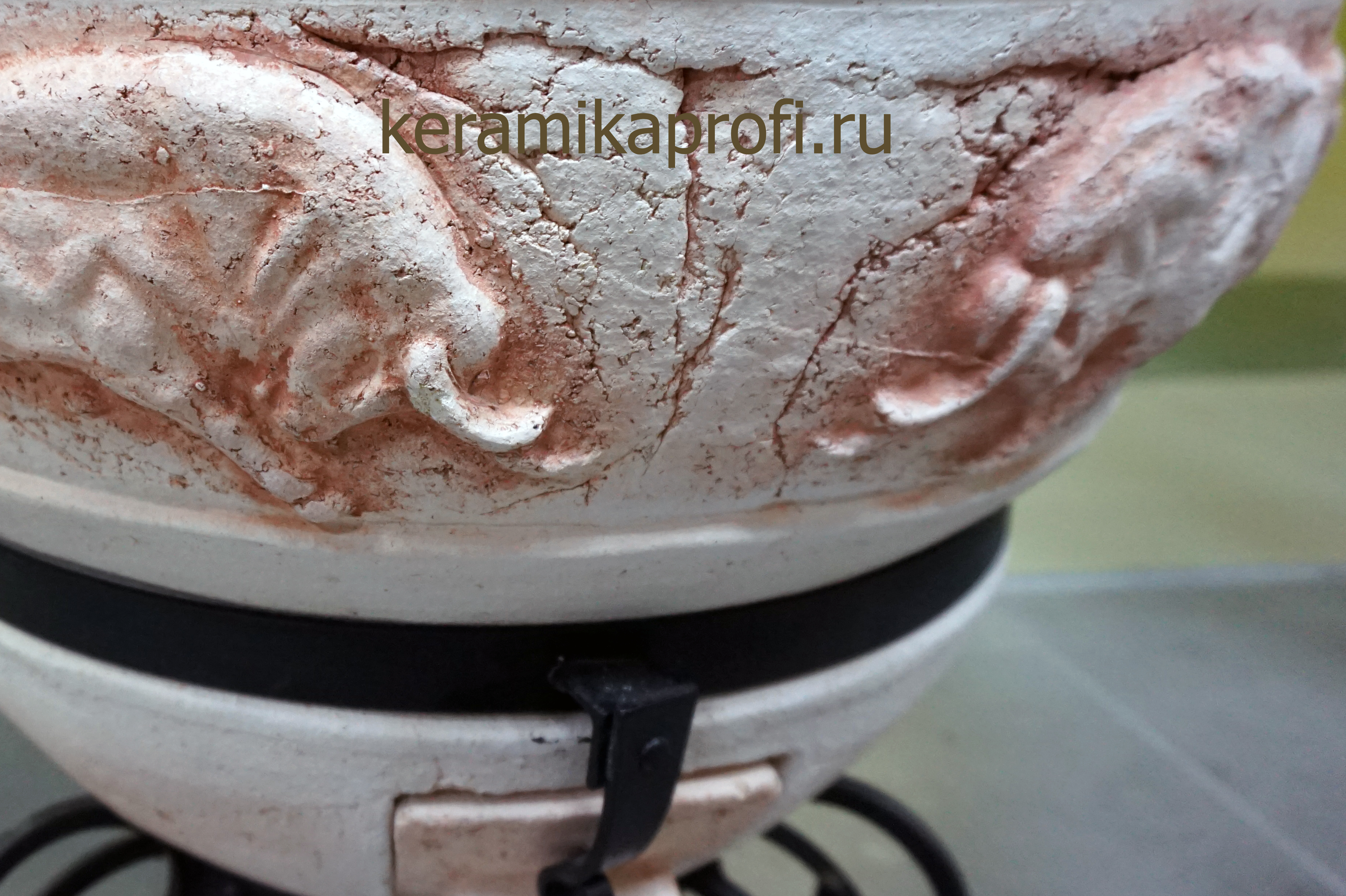 Тандыры, произведенные вручную, имеют объемный рисунок. Поверхность тандыра гладкая, без изъянов.